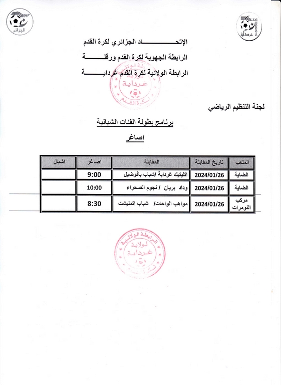 Tous droits réservés © 2014 - 2026 Ligue Wilaya de Football - Ghardaia.