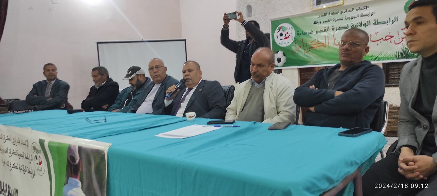 بحضور السيد رضوان زيان ممثل مدير الشباب و الرياضة السيد رويغي الحاج مسعود المدير التقني الجهوي السيد فتحي عبيد مكون فديرالي السيد جمال بوعبدلي المدير الفني الولائي و اعضاء المكتب التنفيذي للرابطة الولائية و بعض الضيوف.