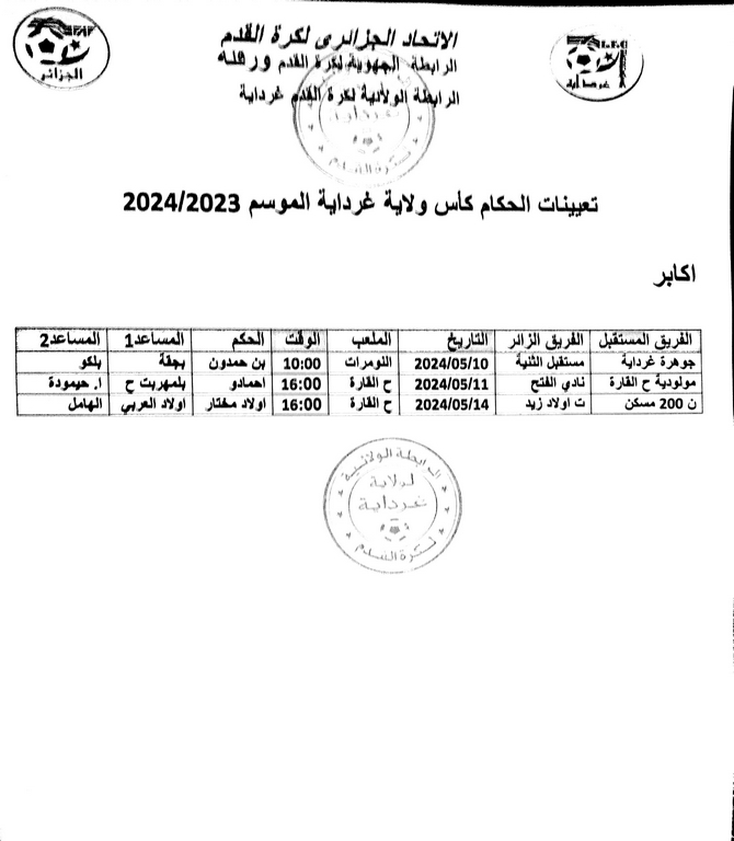 تعيينات الحكام لكاس الولاية 2024-2023