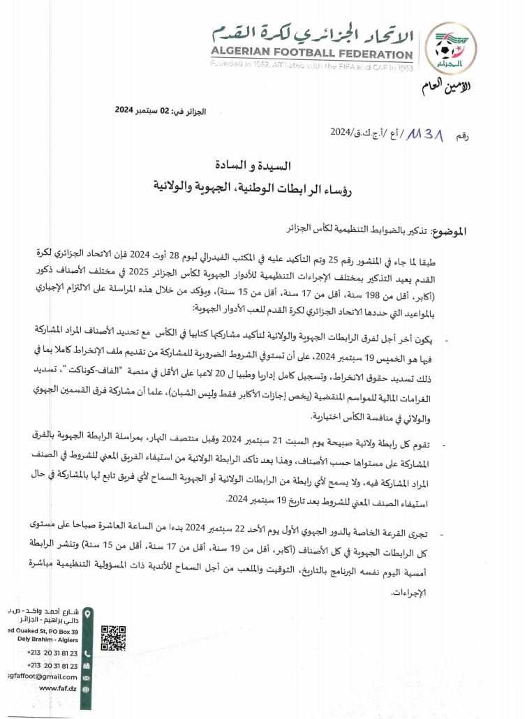 تذكير بالضوابط التنظيمية لكأس الجزائر