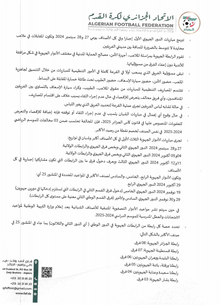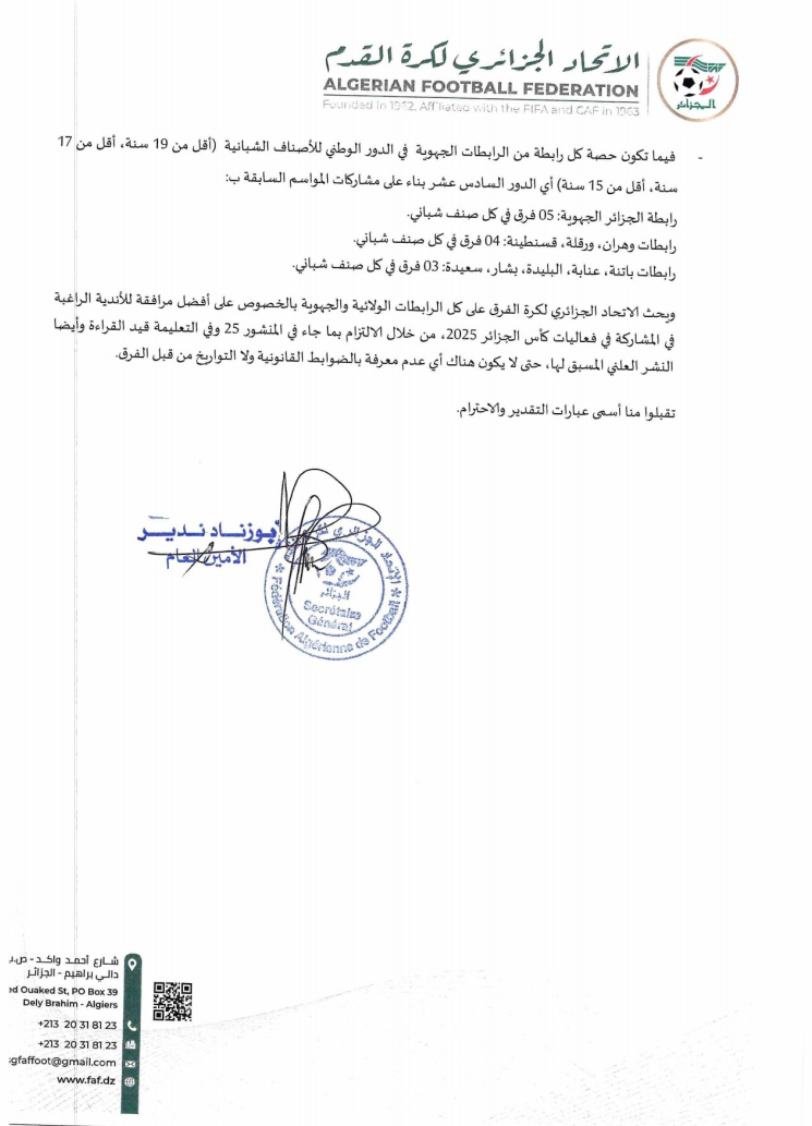 Tous droits réservés © 2014 - 2026 Ligue Wilaya de Football - Ghardaia.