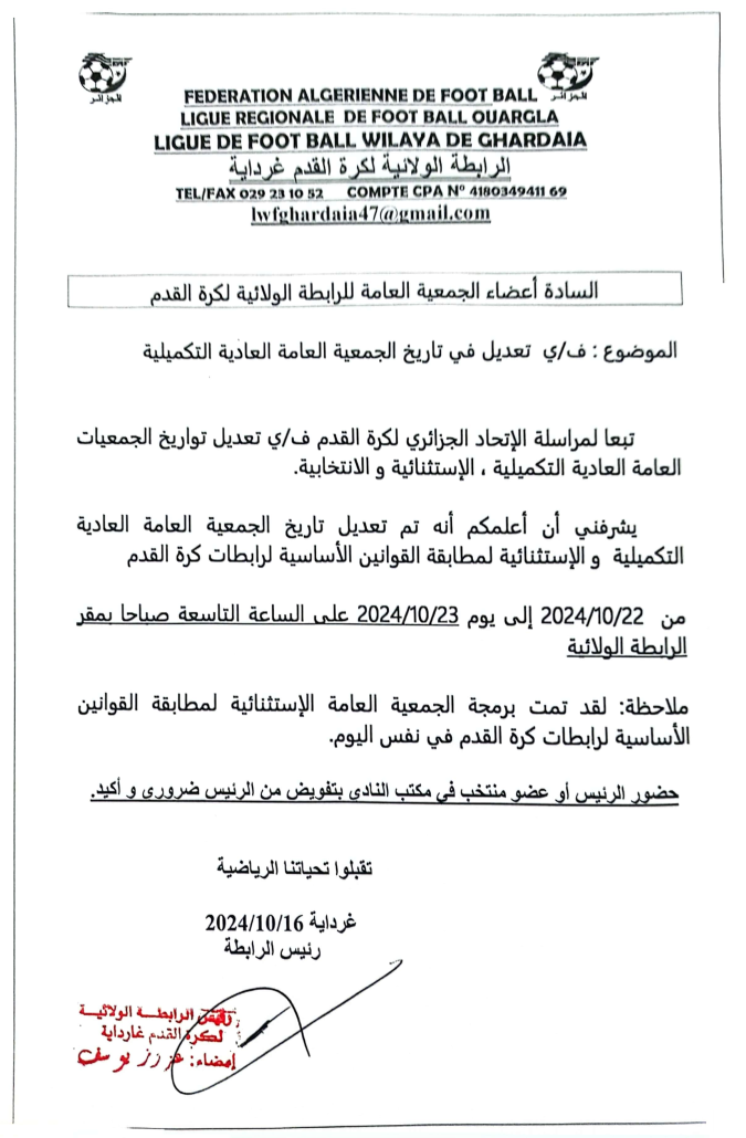 Tous droits réservés © 2014 - 2026 Ligue Wilaya de Football - Ghardaia.