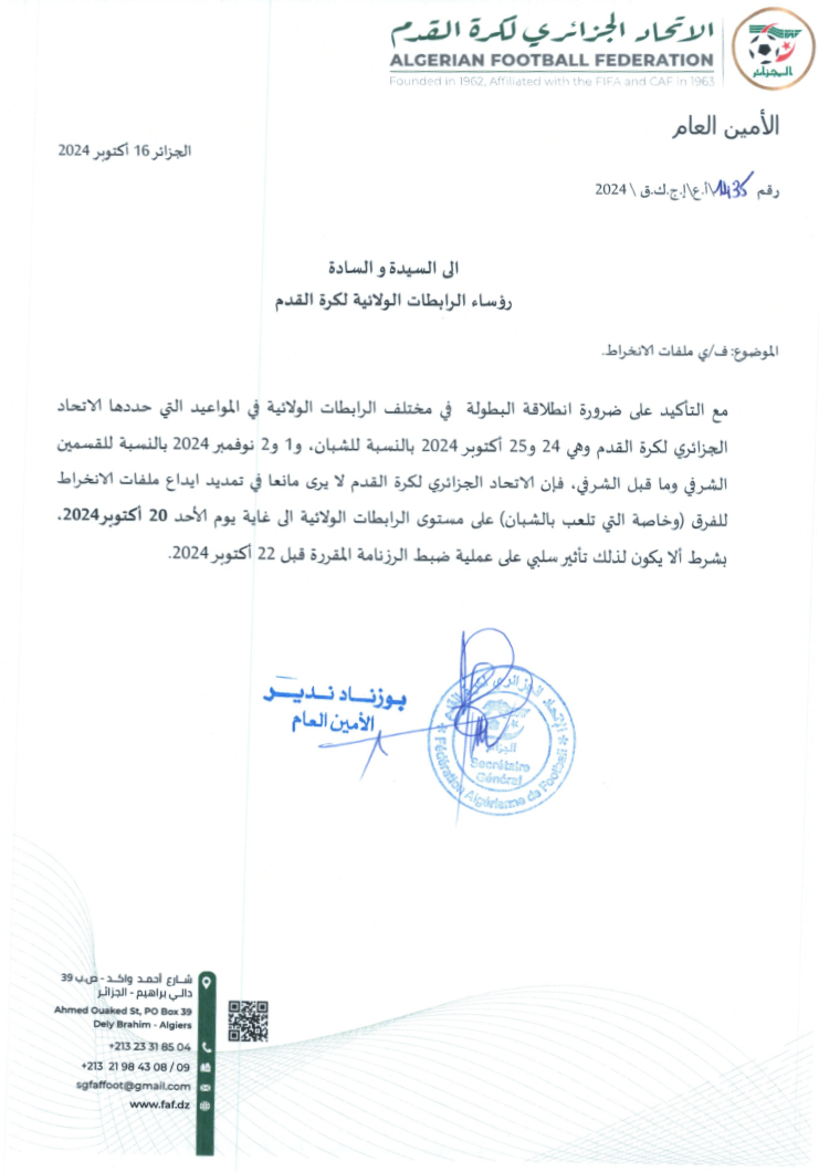 Tous droits réservés © 2014 - 2026 Ligue Wilaya de Football - Ghardaia.