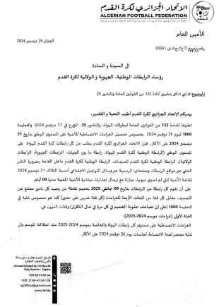 Tous droits réservés © 2014 - 2026 Ligue Wilaya de Football - Ghardaia.