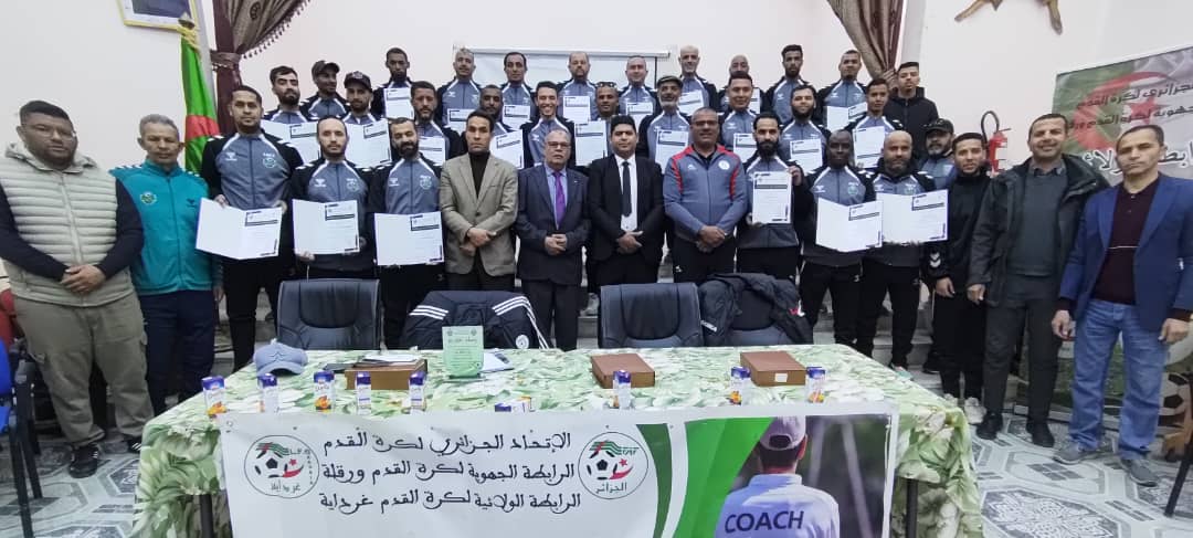 اختتم اليوم الاربعاء 31 ديسمبر 2025 بدار الشباب الامير عبد القادر غرداية تربص المدربين فدرالي 2 في تجمعه الاول بحضور رئيس الرابطة ومدير ديوان موسسات الشباب غرداية والمدير الفني الجهوي والولائي واعضاء الرابطة والمديرية الفنية الولائية تم خلالها توزيع شهادات على المتربصين بالإضافة إلى تكريم المدير الفني الجهوي بمناسبة تعيينه على المديرية وجهوده المبذولة خلال التربص وتكريم مدير ديوان مؤسسات الشباب ومدير دار الشباب نظير مساهمتهم اللوجيستيكية في إنجاح التربص. |