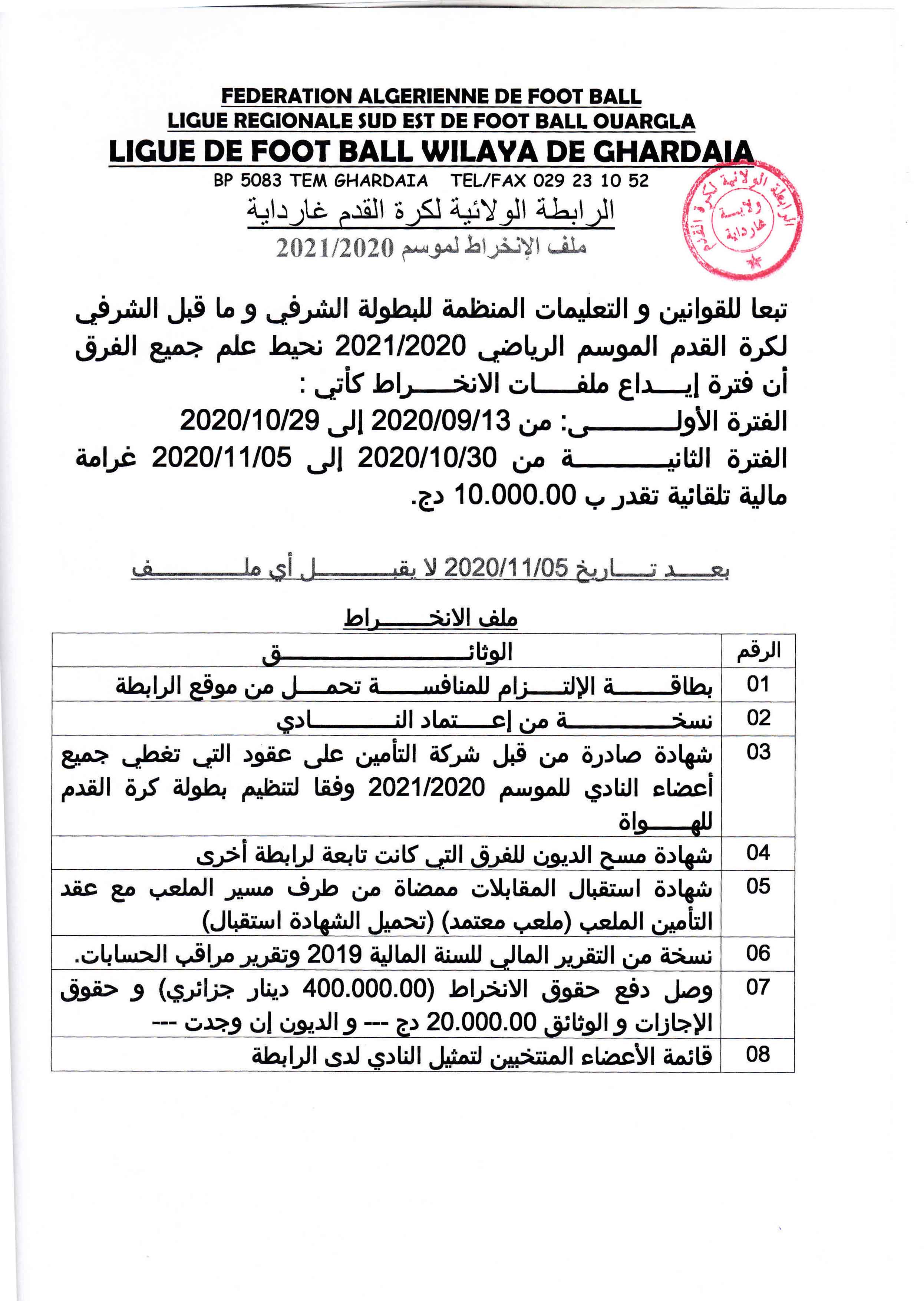 ملف الإنخراط للموسم الرياضي 2020/2021