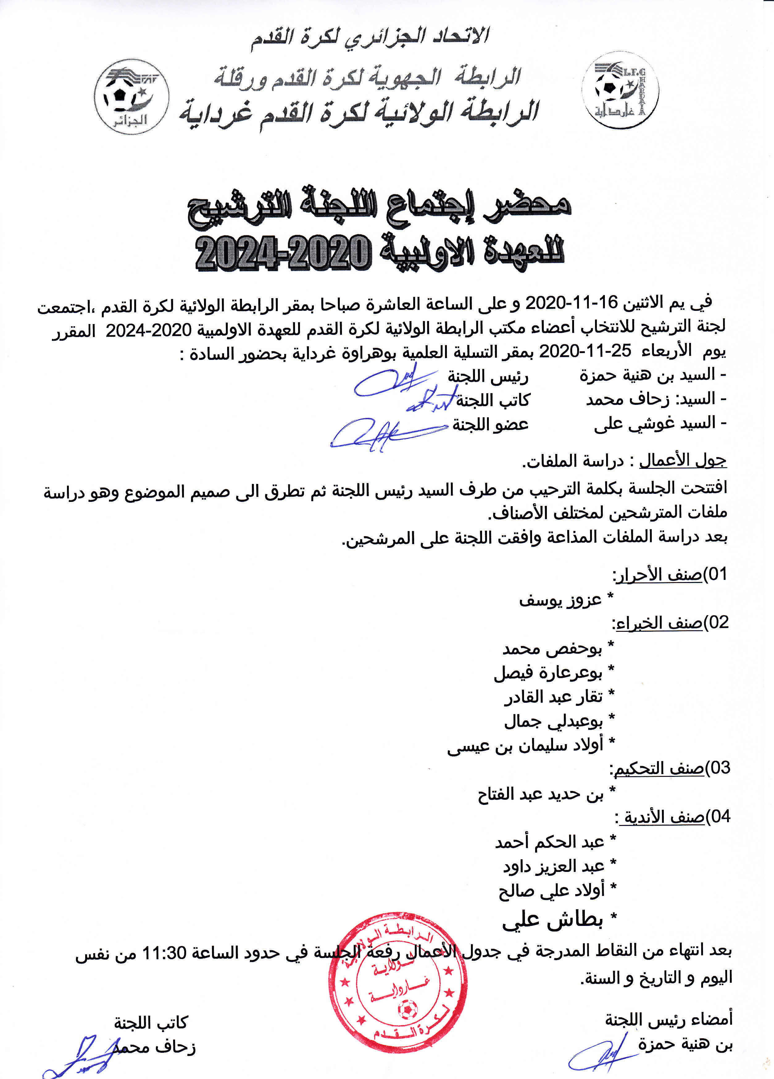 محضر اجتماع لجنة الترشيح للعهدة الأولمبية 2020-2024