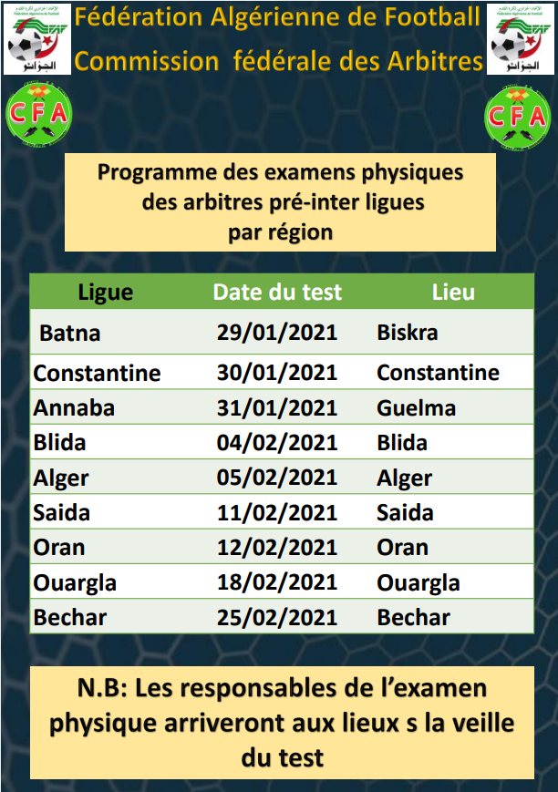 الامتحان البدني للحكام الجدد لولاية غرداية مابين الرابطات يوم 18 فيفري 2021 بورقلة