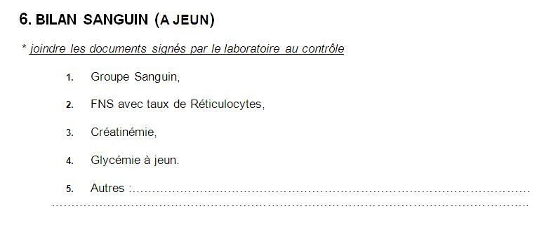 ملاحظة: على الحكم الذي لم يقم ب '' راديو القلب '' "Echocardiographie" الموسم الماضي عليه إحضاره يوم الفحص.