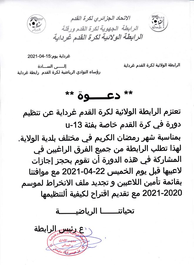 Tous droits réservés © 2014 - 2026 Ligue Wilaya de Football - Ghardaia.