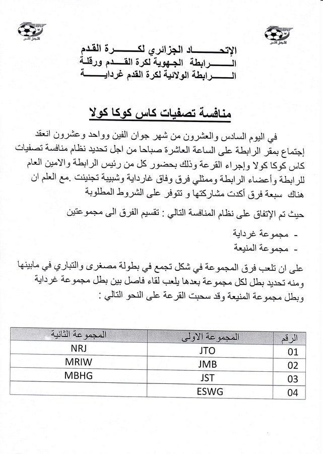 Tous droits réservés © 2014 - 2026 Ligue Wilaya de Football - Ghardaia.