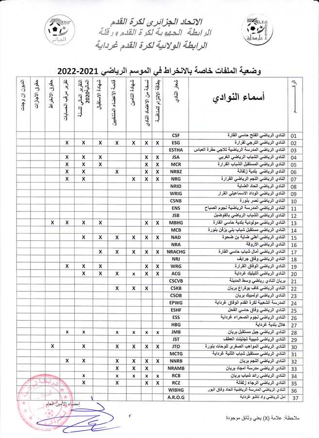 وضعية الملفات الخاصة بالإنخراط في الموسم الرياضي 2021-2022