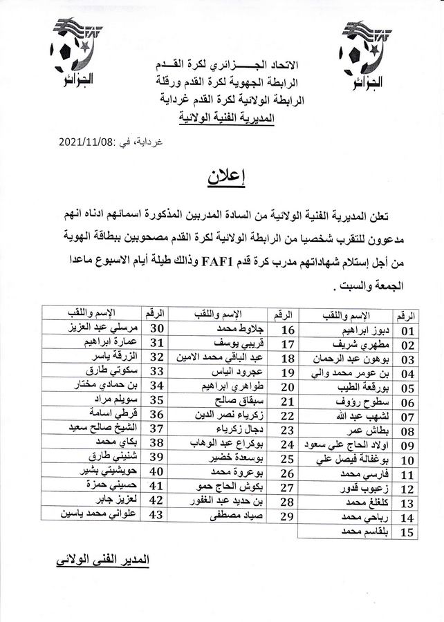 Tous droits réservés © 2014 - 2026 Ligue Wilaya de Football - Ghardaia.