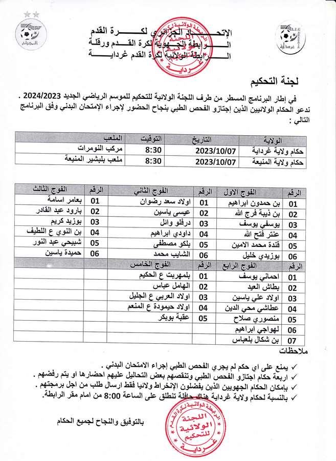 Tous droits réservés © 2014 - 2026 Ligue Wilaya de Football - Ghardaia.