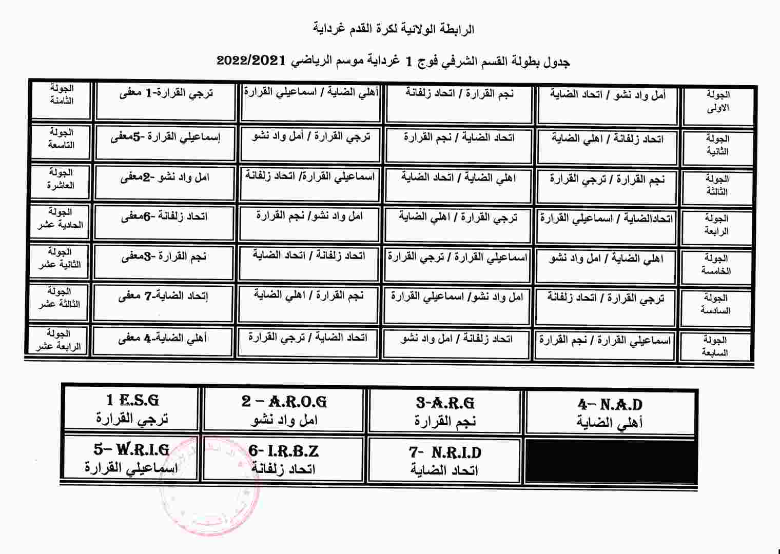 جدول بطولة القسم الشرفي فوج 1 غرداية الموسم الرياضي 2021/2022