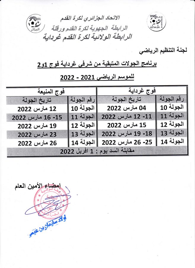 برنامج الجولات المتبقية من شرفي غرداية فوج 1 و 2