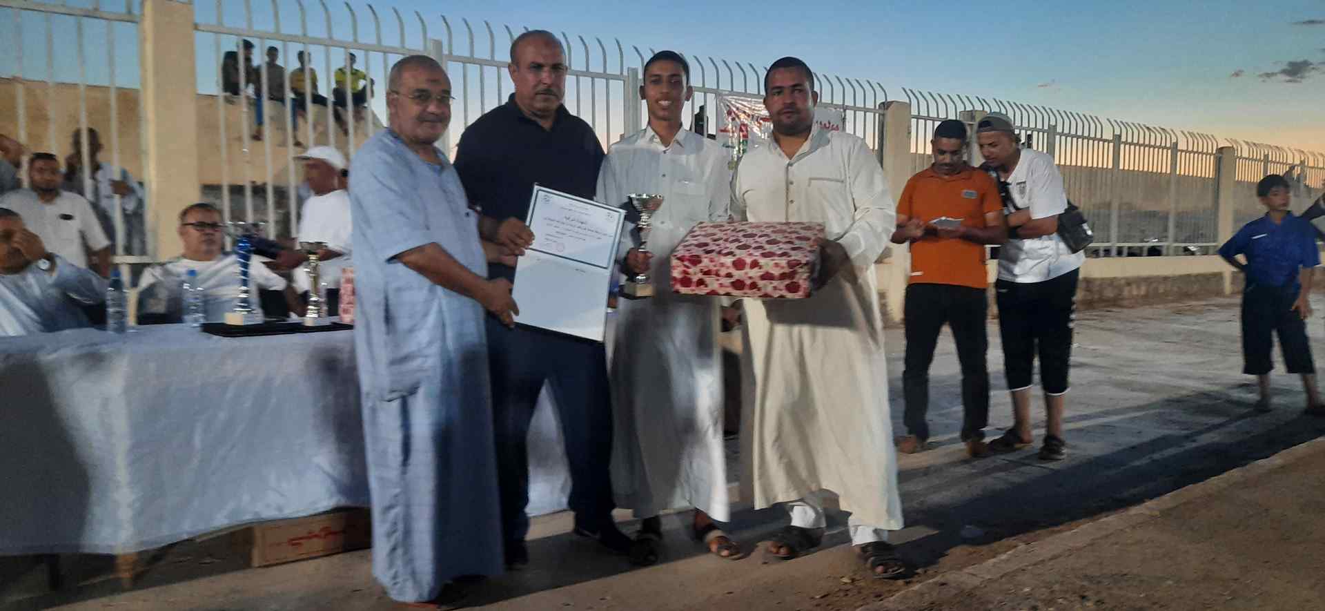 وذالك بحضور بعض الاطارات الرياضية يتقدمهم السيد بلكحل نائب برلماني ومدير الشباب والرياضة و اعضاء الرابطة الولائية غرداية وأعضاء اللجنة الفنية الجهوية ورقلة بالإضافة إلى ممثلي بلديات المنيعة وحاسي القارة . كما تم تكريم في هذا الحفل الختامي :