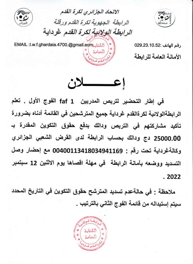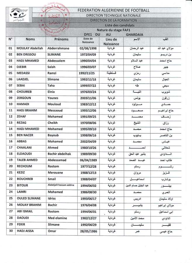 FAF1 إعلان بخصوص تربص المدربين الفوج الأول