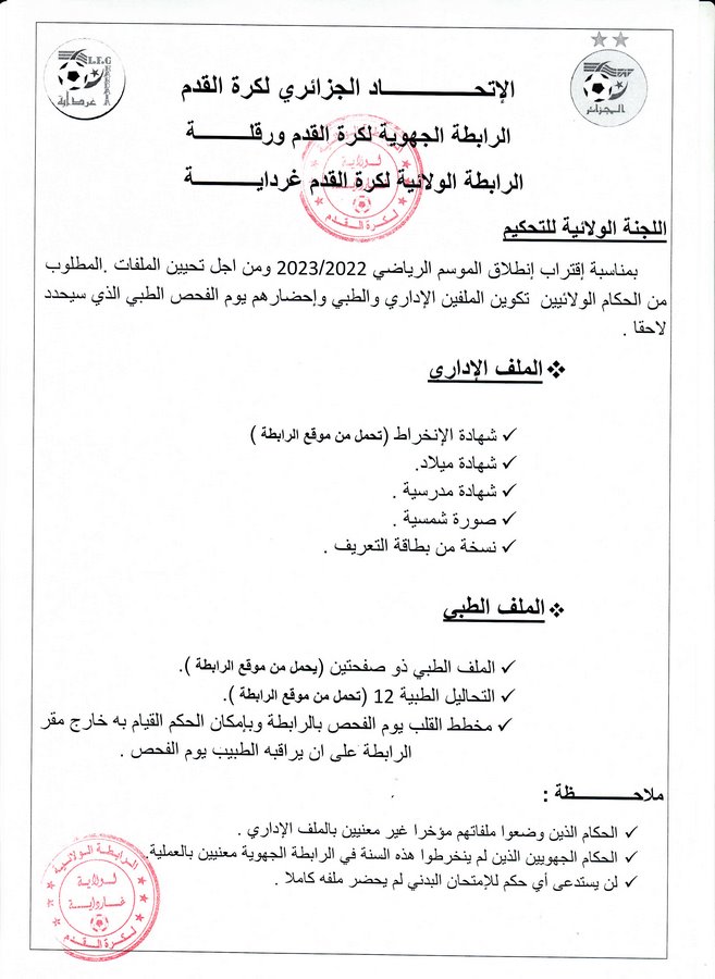 Tous droits réservés © 2014 - 2026 Ligue Wilaya de Football - Ghardaia.