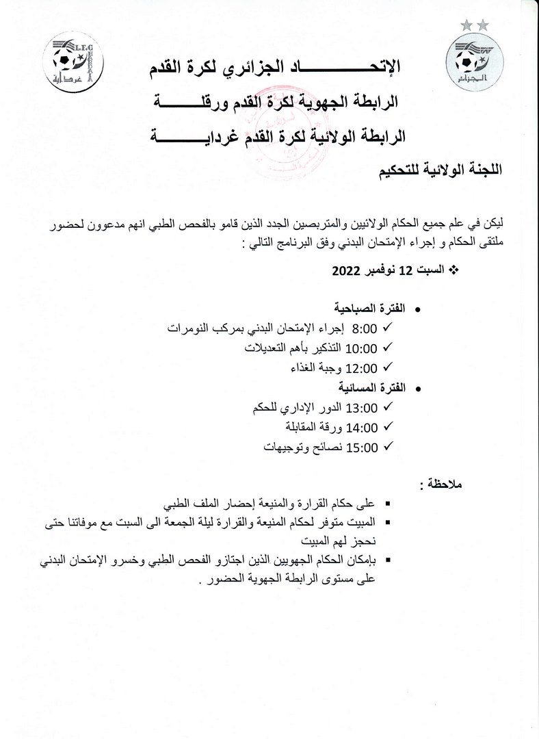 Tous droits réservés © 2014 - 2026 Ligue Wilaya de Football - Ghardaia.