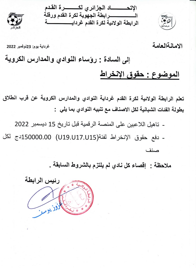 Tous droits réservés © 2014 - 2026 Ligue Wilaya de Football - Ghardaia.