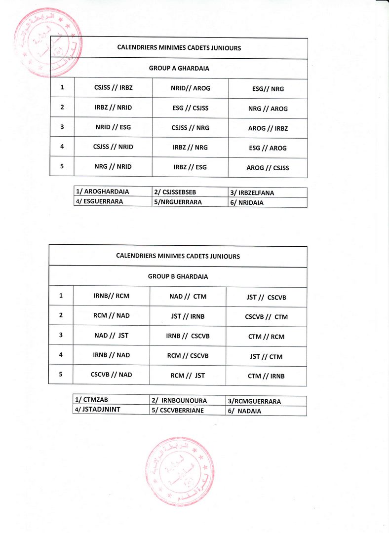 جدول مباريات الفئات الشبانية اصاغر اشبال . اواسط