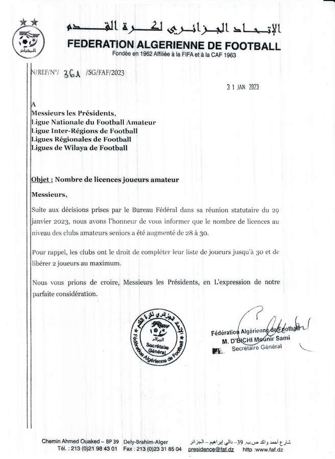Tous droits réservés © 2014 - 2026 Ligue Wilaya de Football - Ghardaia.