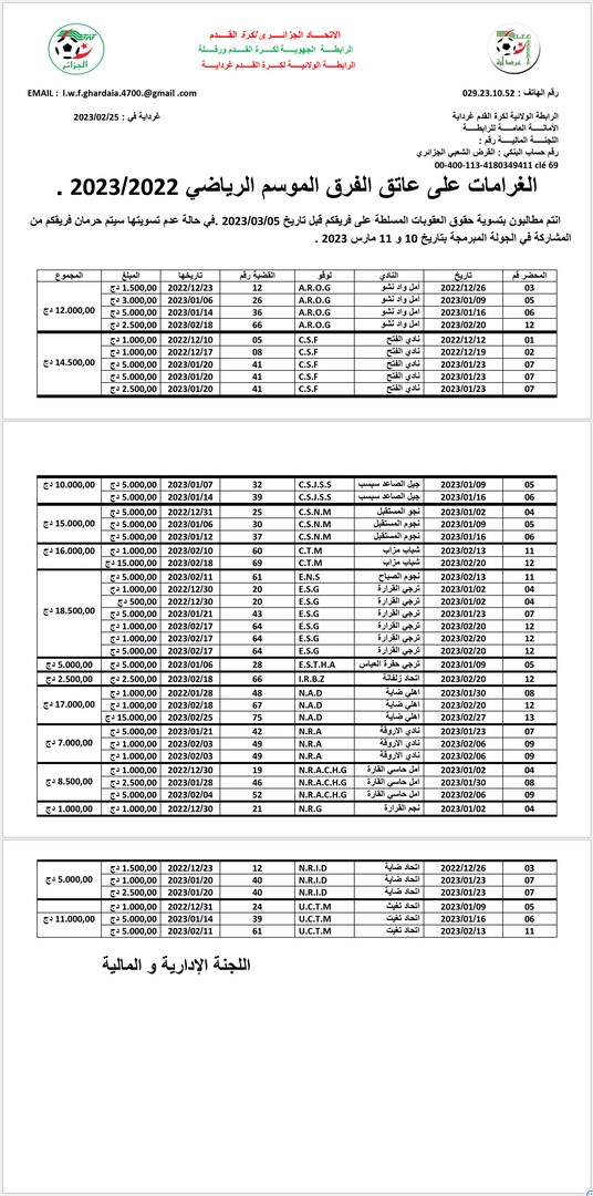 الغرامات على عاتق الفرق الموسم الرياضي2022/2023