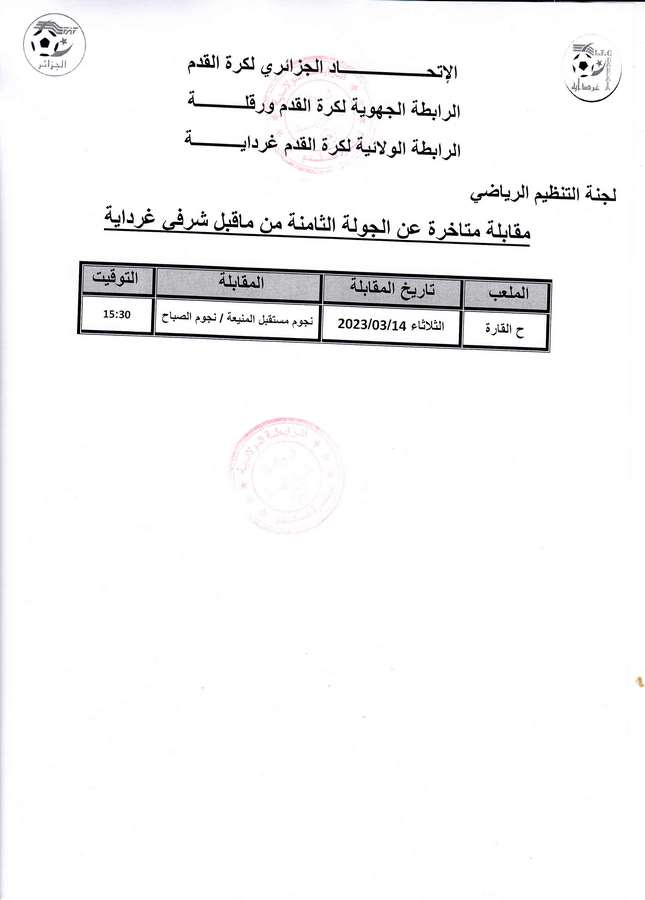 Tous droits réservés © 2014 - 2026 Ligue Wilaya de Football - Ghardaia.