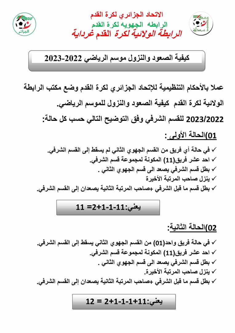 كيفية الصعود و النزول موسم الرياضي 2022/2023