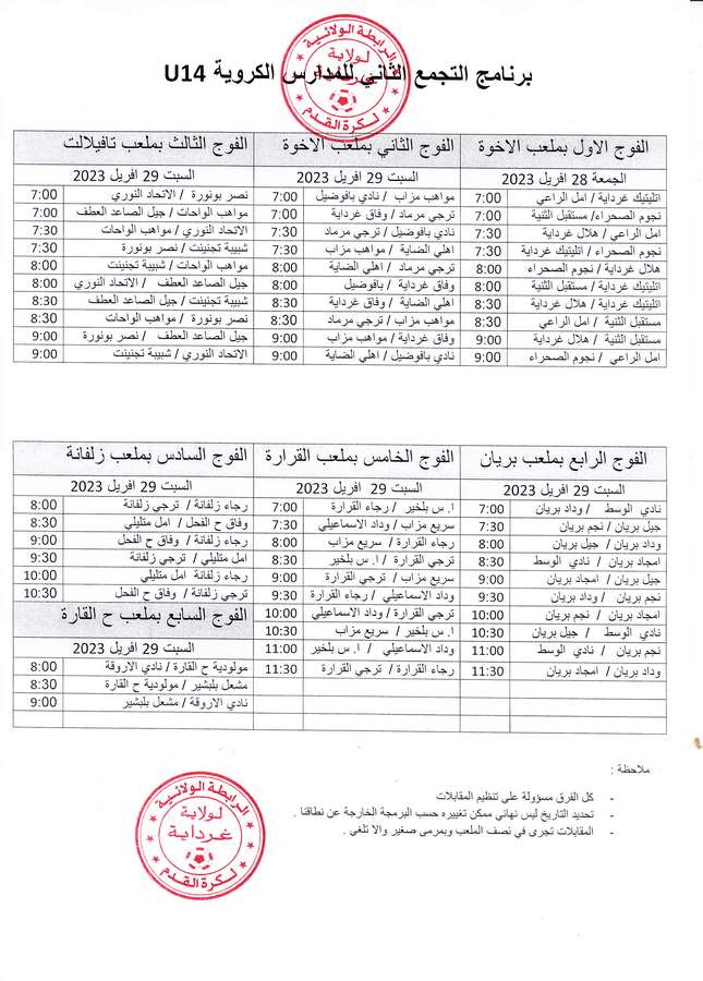 U14 برنامج التجمع الثاني للمدارس الكروية