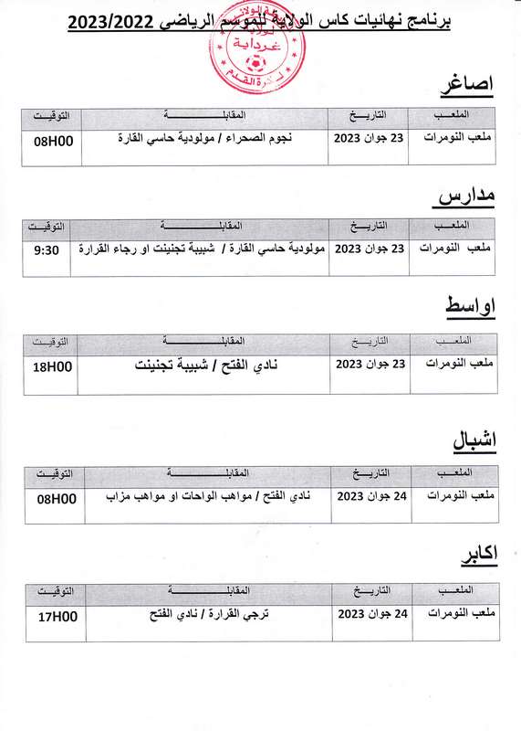 برنامج نهائيات كأس الولاية للموسم الرياضي 2022/2023