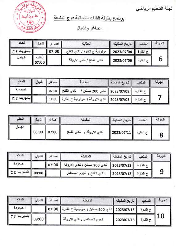 برنامج بطولة الفئات الشبانية فوج المنيعة أصاغر و أشبال
