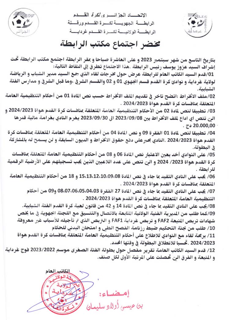 محضر اجتماع مكتب الرابطة ليوم 09 سبتمبر 2023