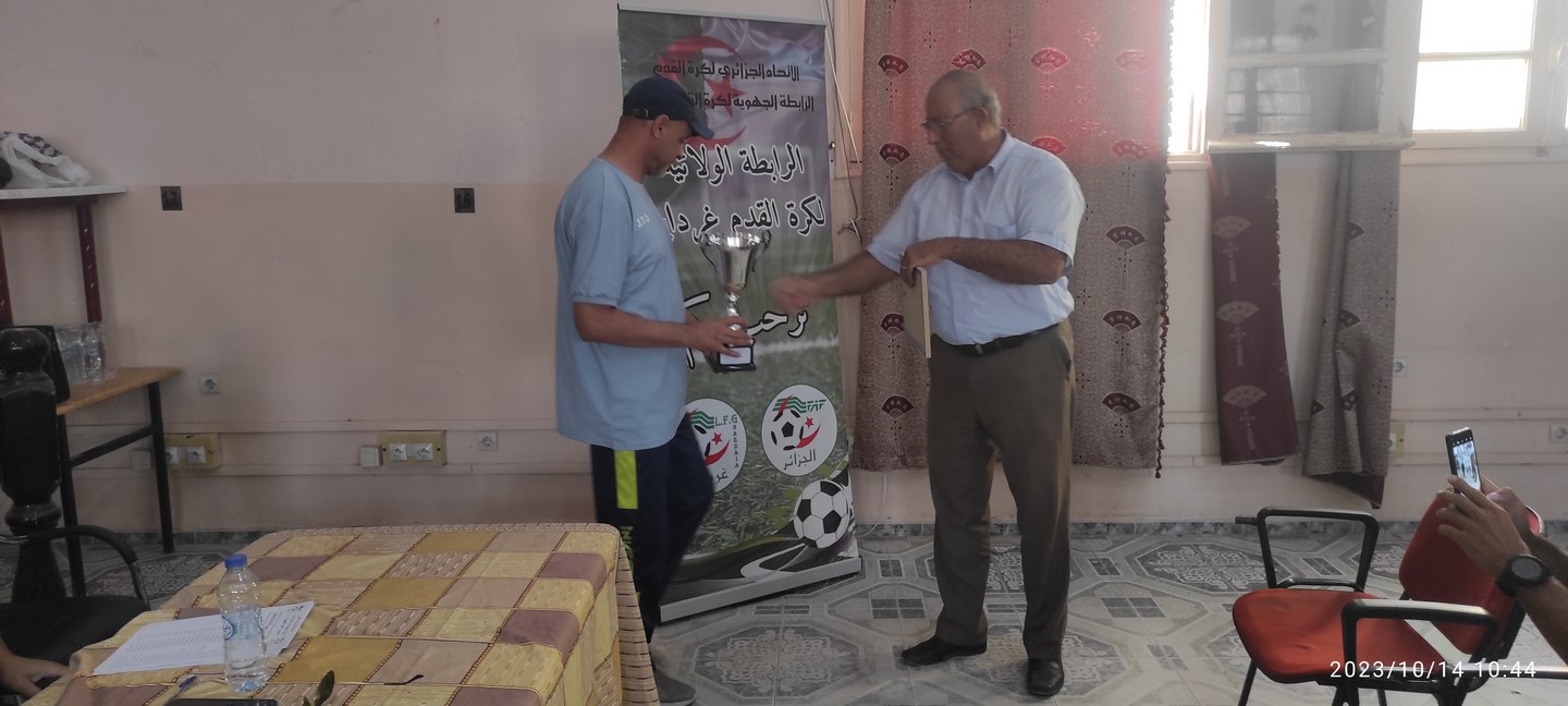 اليوم السبت 2023/10/14 تم تكريم النوادي المتحصلة على البطولة للفئات الصغري. للموسم الرياضي 2023/2022 بدار الشباب الامير عبد القادر غرداية