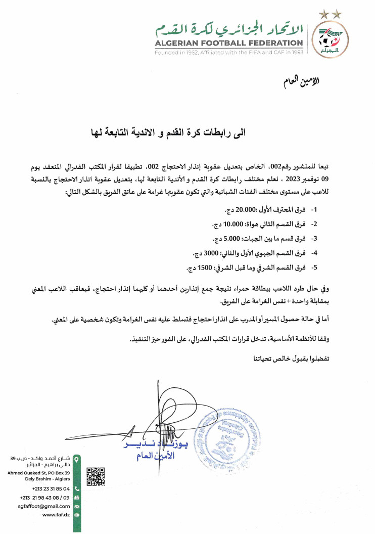Tous droits réservés © 2014 - 2026 Ligue Wilaya de Football - Ghardaia.